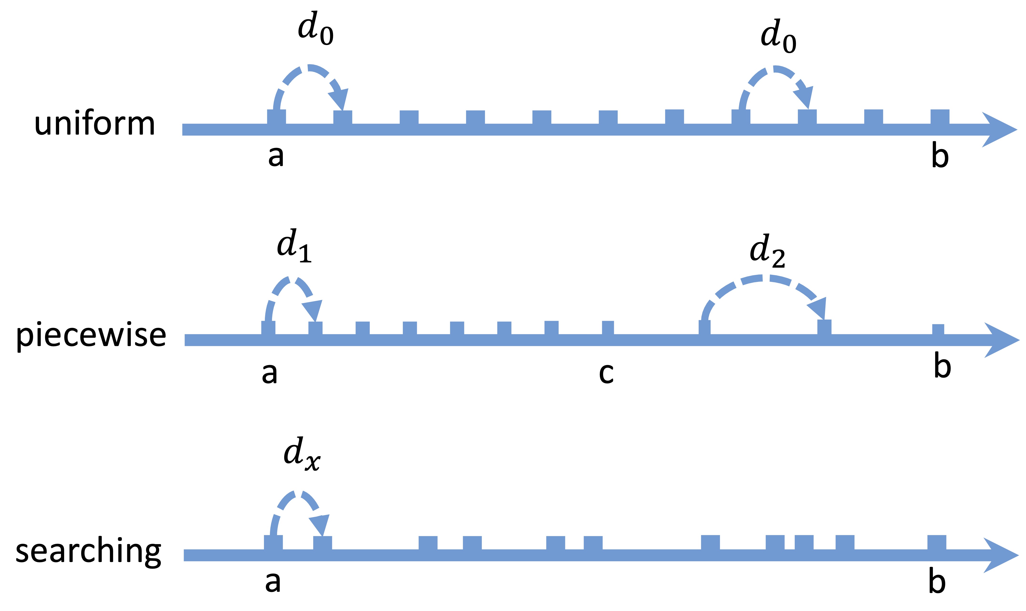 従来の方法では、通常、固定のストライドで均一なサンプリング方法を使用しています。これは効果的ですが、柔軟性に欠けます。さらに、逆プロセスの前半部分が後半部分よりも重要であることを観察しています。したがって、私たちは時間ステップのシーケンスで異なるサンプリングストライドを使用するピースワイズサンプリング方法を提案します。また、進化アルゴリズムを使用して最適なサンプリングシーケンスを見つけるための検索方法を提案します。詳細は以下に示します: