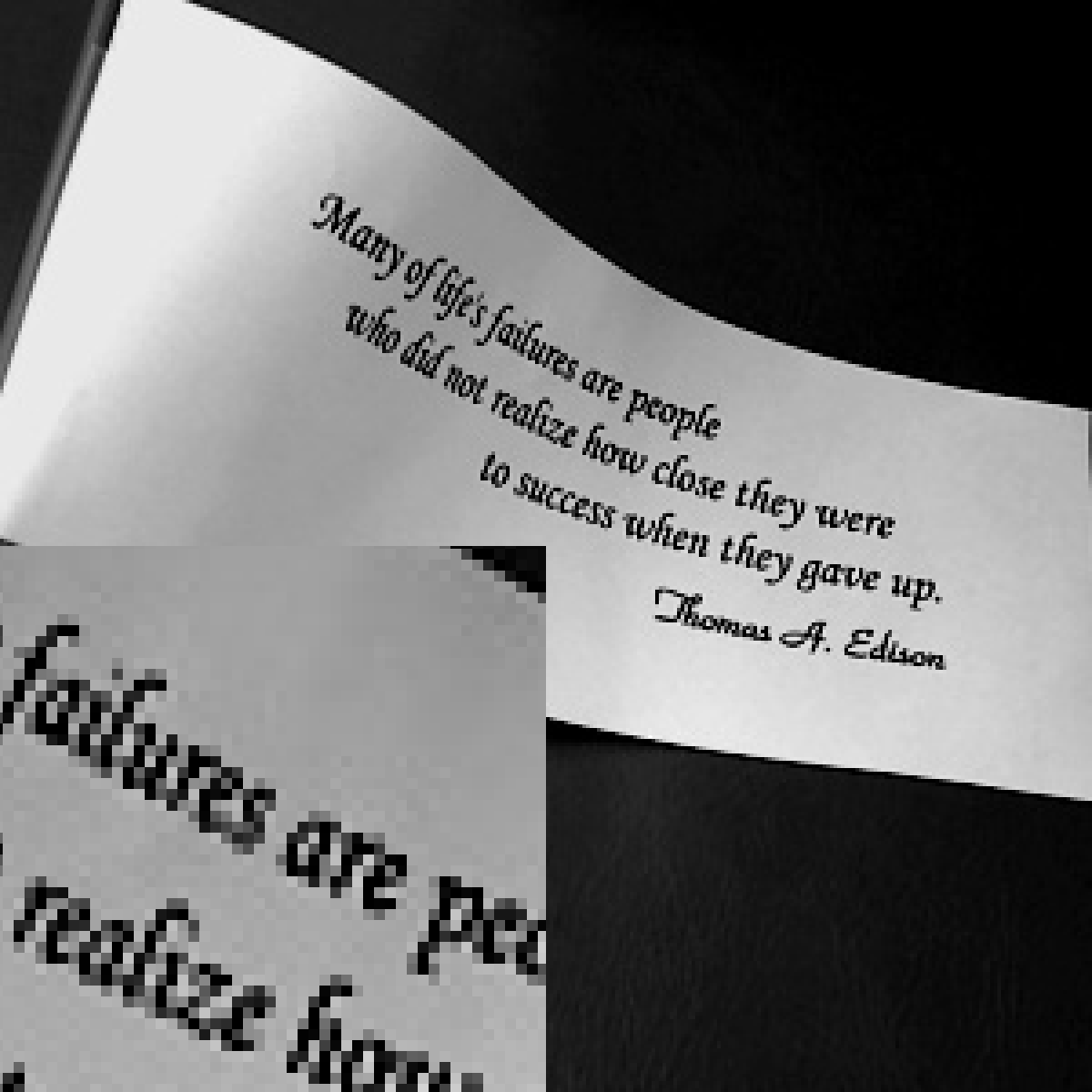 手持ちのビデオカメラで撮影された動画のフレームから超解像を行った画像を生成する技術. フレーム間の特徴点をトラッキングした結果を元にして,フレームの平面推定とブレ除去を行い,超解像処理をする. 従来の超解像では画質の改善が難しい・複数平面があるシーン・一つの平面中に複数方向のブレがあるシーンに対応することができた. 平面推定 ・特徴点から平面候補を作成し,画素毎に候補を選択する. 平面候補同士で領域の重複を許すため,曲面などの直接平面推定するには困難なシーンにも対応している.