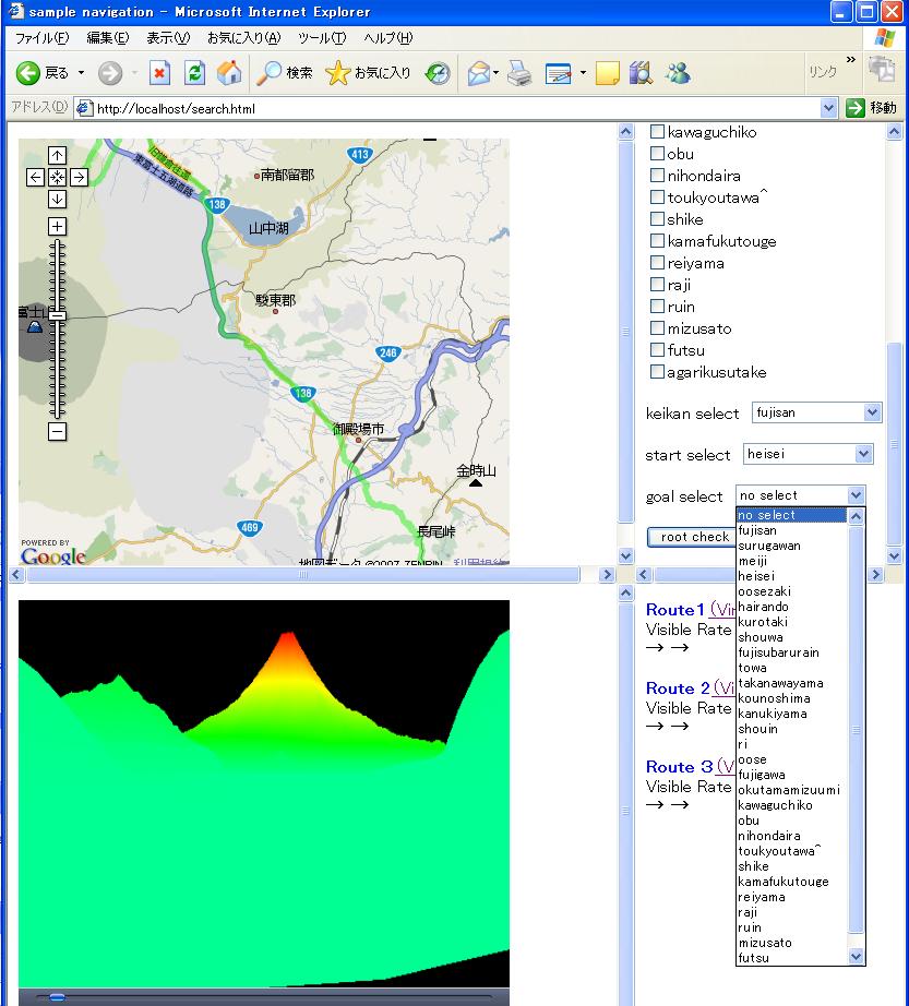景観の可視性を考慮したルート探索システム