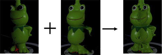 計測によって得られた色情報と幾何情報より拡散反射特性の推定を行ないます。