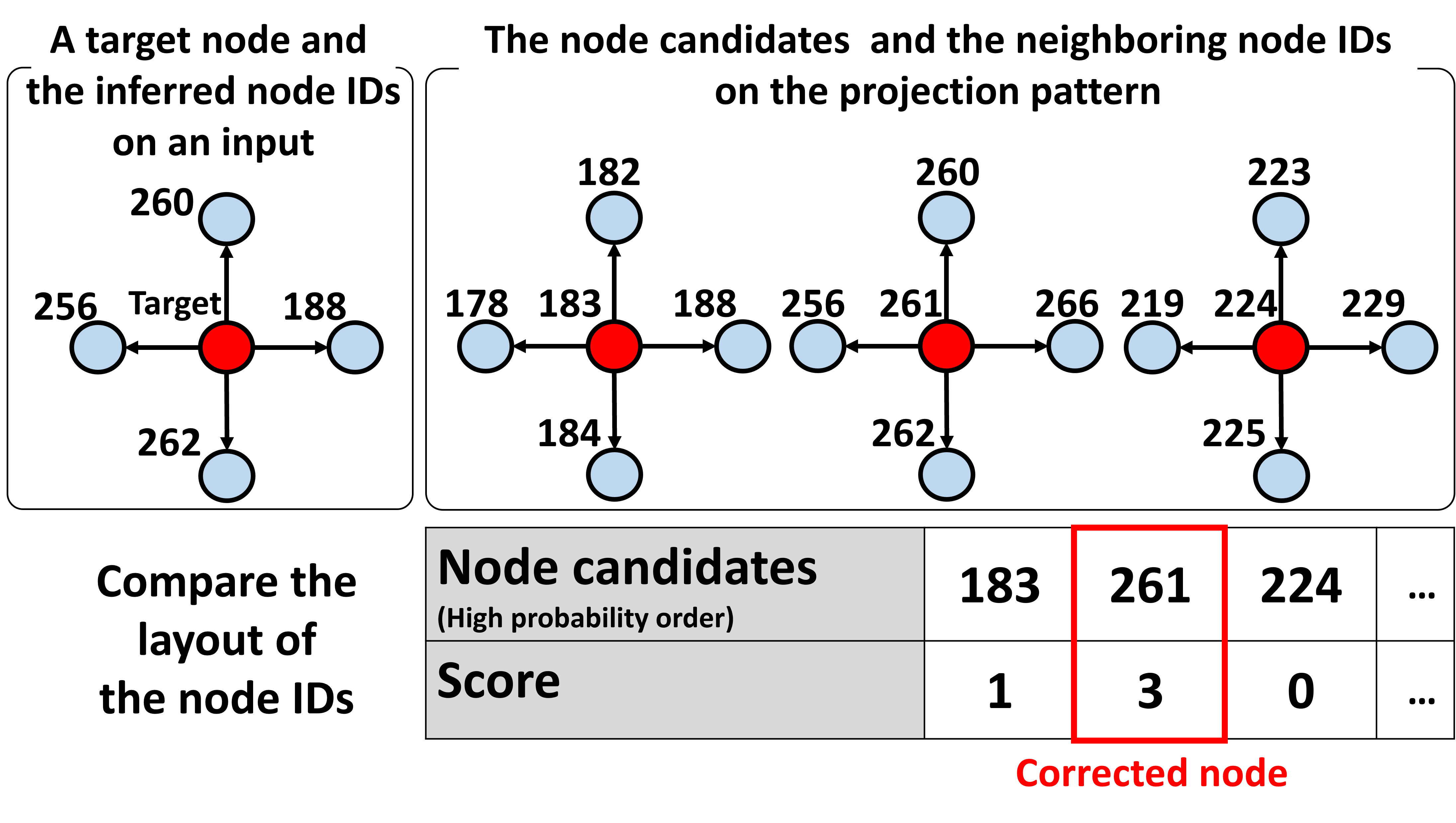 2. Corresponding nodes refinement by solving MRFOne of the important factor for active stereo method is finding the correspondences between the projection and the projected patterns accurately. The problem can be seen as an optimization problem that follows to Markov random field (MRF). Suppose the node inference is done correctly, the layout of the target node and the neighboring node in the input image should be the same as those on the projection pattern. Among the corresponding node candidates obtained by GCN inference, the node that satisfies this condition the most is the final inferred node.